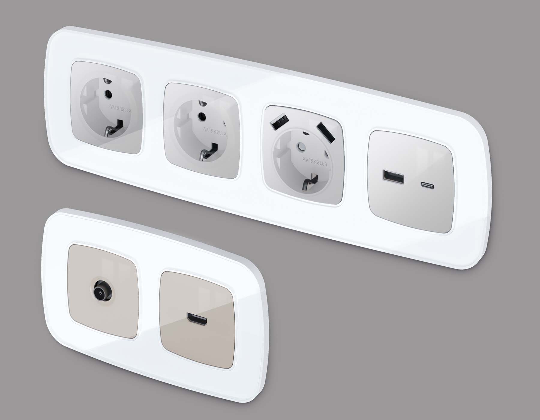 Многогранный ассортимент Ambrella Volt включает в себя механизмы, лицевые панели и рамки, а также комплекты, доступные в различных цветовых решениях. Продукция представлена в модульном исполнении, что позволяет гибко настраивать внешнийвид и функциональность. Вам будет легко заменить лицевую панель, рамку или механизм, найдя идеальное сочетание цветов.