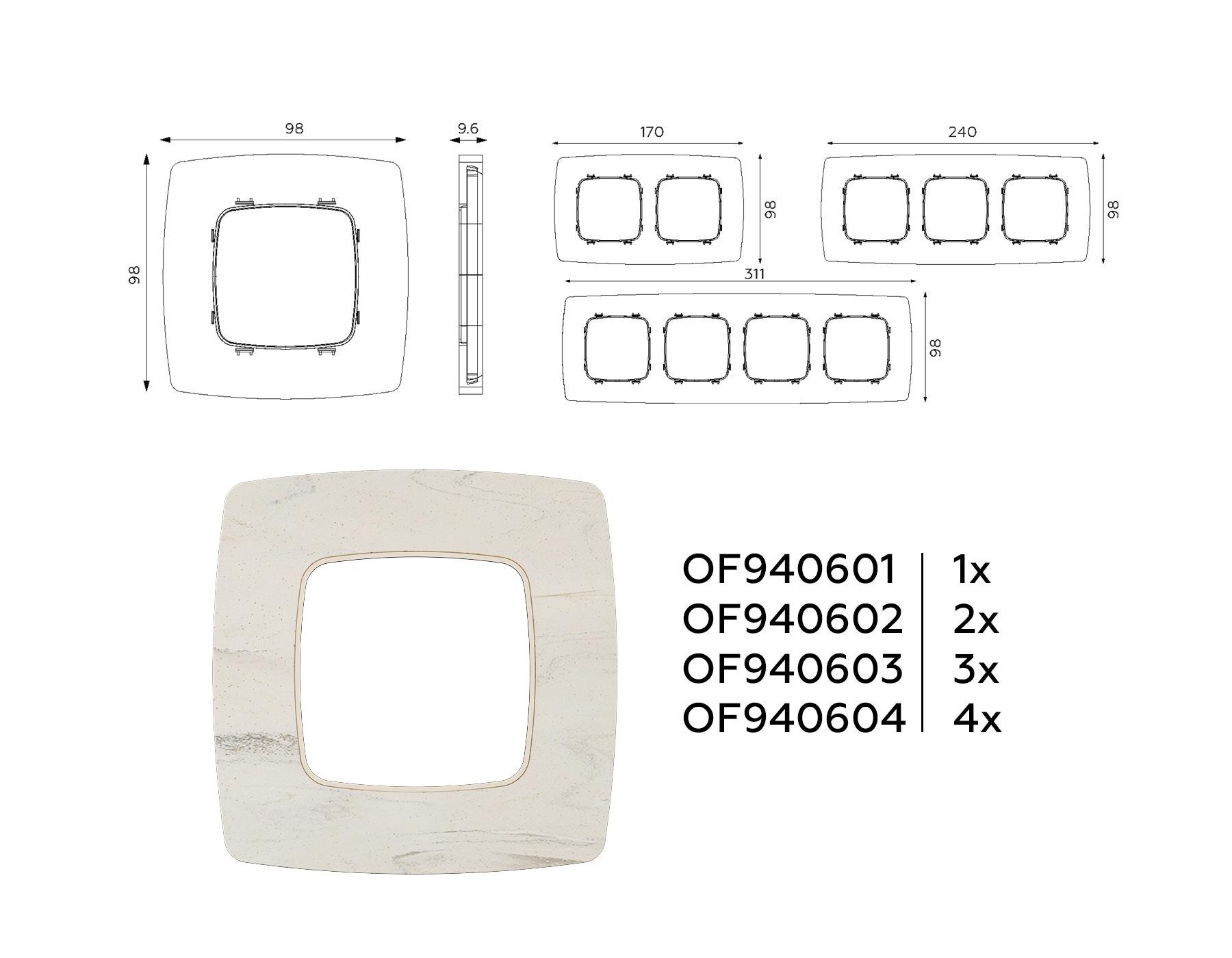 | Альтернативное название | Рамка OMEGA Opera (Серо-бежевый мрамор) 4-ая OF940604 |