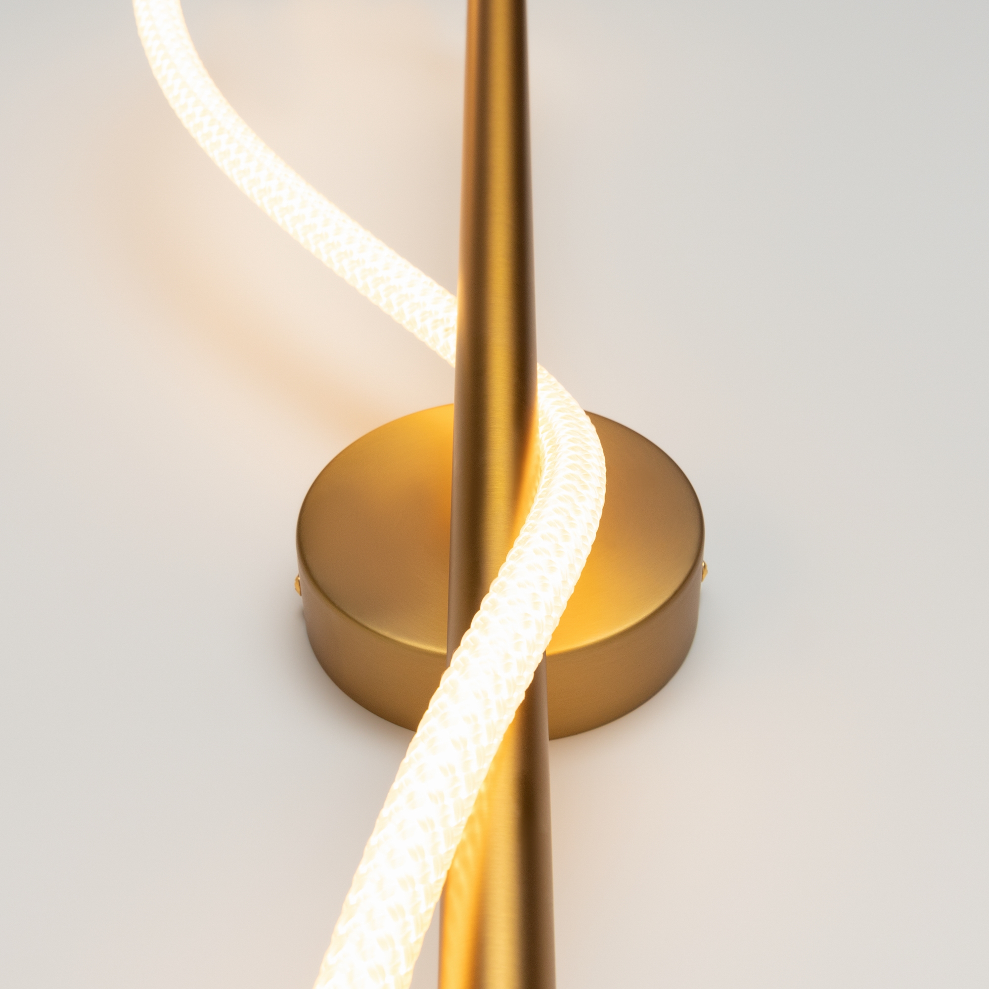 Алюминиевый корпус. Оттенки – золотой, матовый черный. Рассеиватель двух видов – силиконовая трубка и сверхкрепкий жгут (не желтеет со временем, обладает высокой прочностью). Мягкое равномерное свечение благодаря высокой плотности светодиодов. Цветовая температура 3000К. LED-источник света.