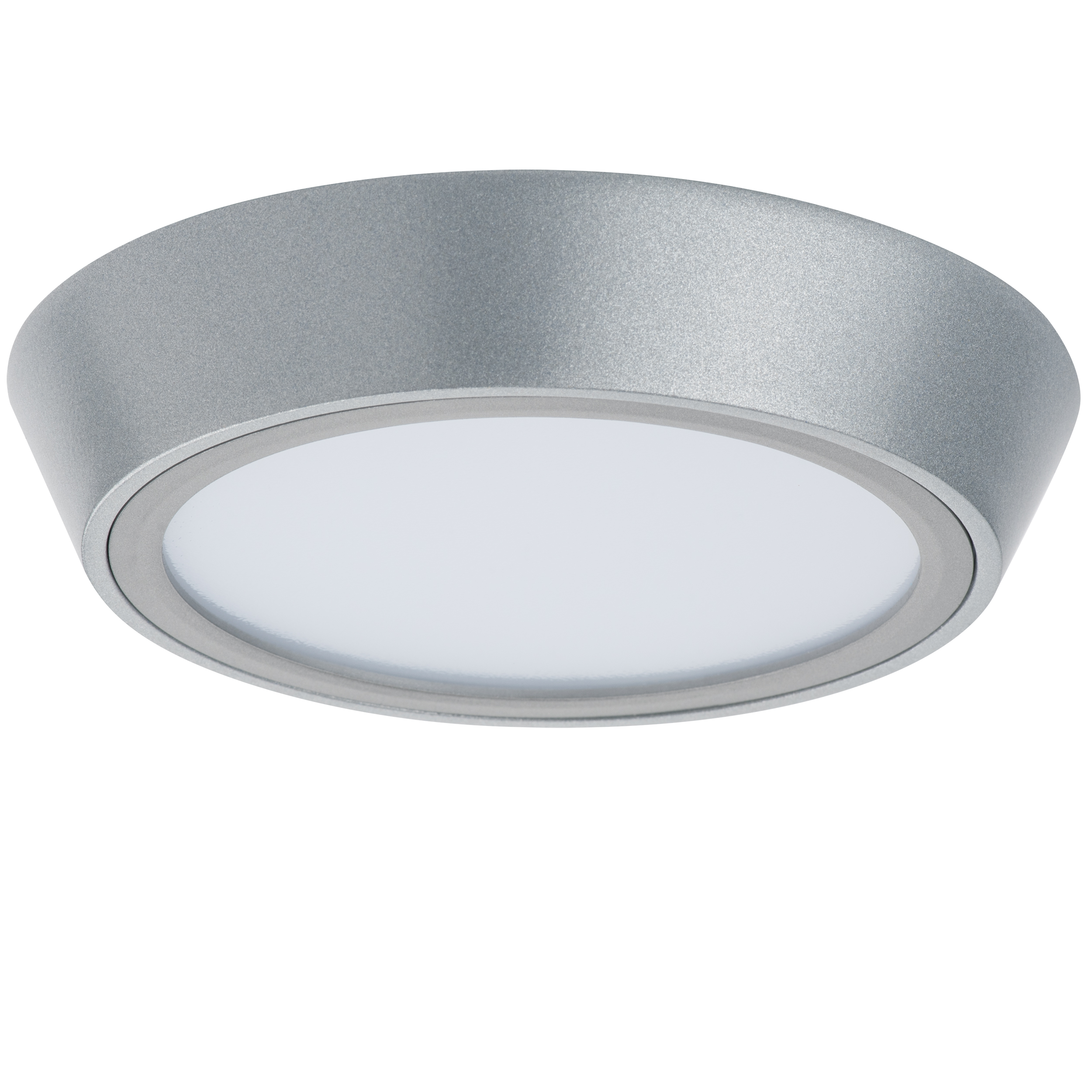 Крепление: a40; Внешние габариты: D150 H25; Материал - основание/плафон: Металл / пластик; Цвет-основание/плафон: хром; Лампа: LED 10 Вт соответствует 100 Вт лампе накаливания, Световой поток: 1175LM; Трансформатор в комплекте 3000K;