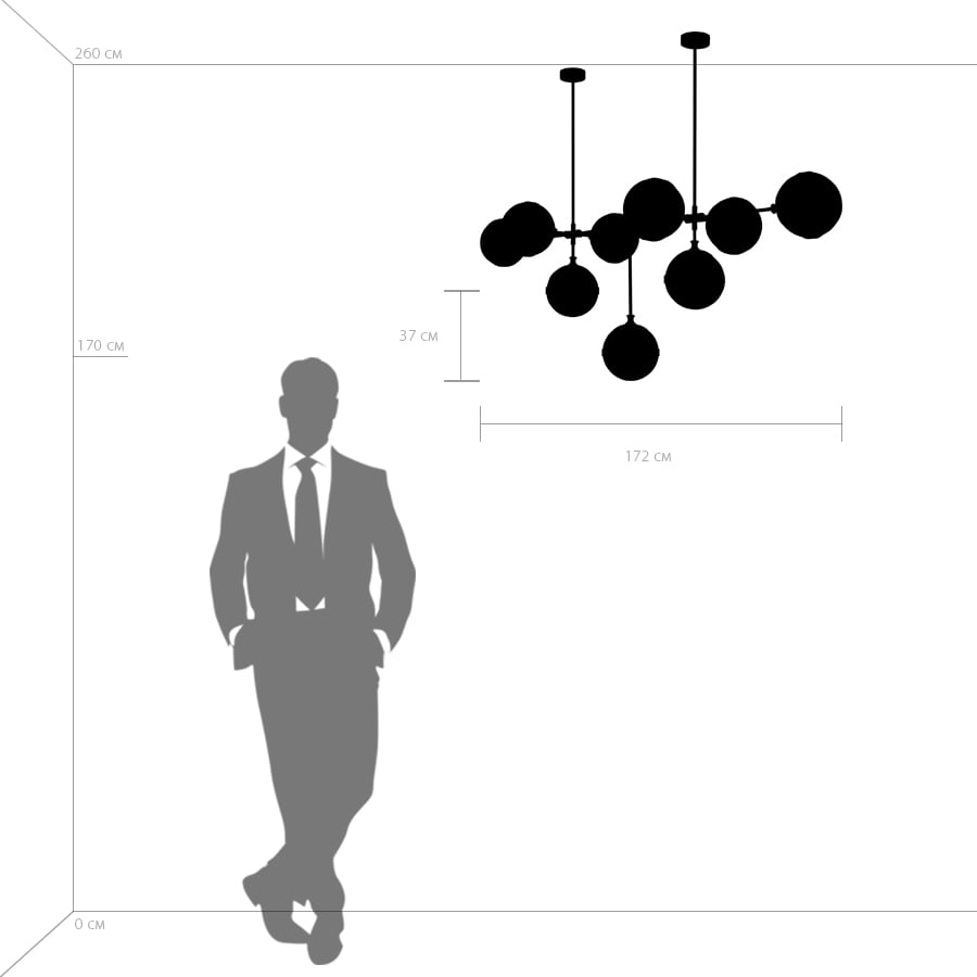 Высота min-max (см): 122; Ширина (см): 172*60; Вес (кг): 11,7; Кол-во ламп: 9хE14; Мощность max (W): 40; Цвет основания/цвет стекла или абажура: умбра/белый;