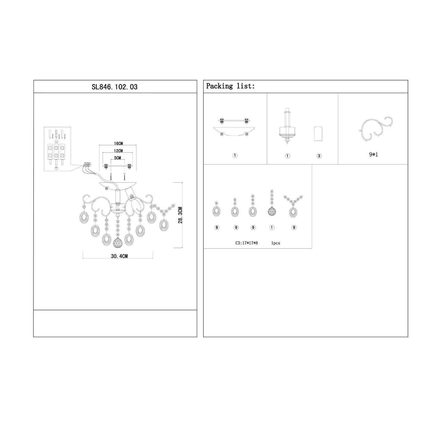 | Альтернативное название | SL846.102.03 Люстра подвесная ST-Luce Темный хром/Тонированный черный E14 3*40W ORECCHINI |